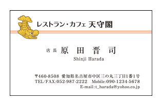 金のシャチホコイラスト入りレストラン・カフェ名刺